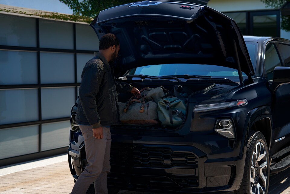 The Silverado EV turns heads with its bold, aerodynamic design that blends form and function. LED headlamps with signature daytime running lamps and animated charge indicators make a striking impression day or night. The RST trim takes style to the next level with standard 24-inch wheels and a power-operated tonneau cover for the cargo bed. All models come equipped with helpful features like a power-operated hood and eTrunk release, wheel-to-wheel assist steps, and an optional Chevytec spray-on bedliner for added durability.