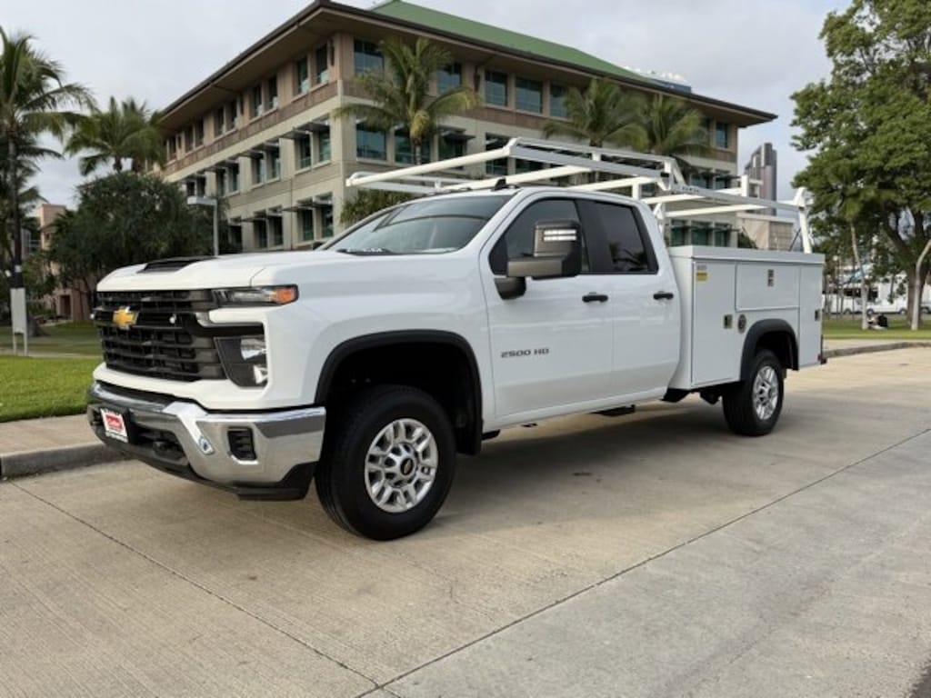 Summit White 2025 Chevrolet Silverado 2500HD Work Truck RWD 10-Speed Automatic 6.6L V8 10-Speed Automatic, Jet Black Vinyl.