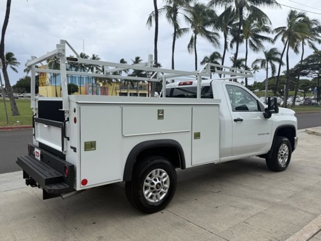 Summit White 2025 Chevrolet Silverado 2500HD Work Truck RWD 10-Speed Automatic 6.6L V8 10-Speed Automatic, Jet Black Vinyl.