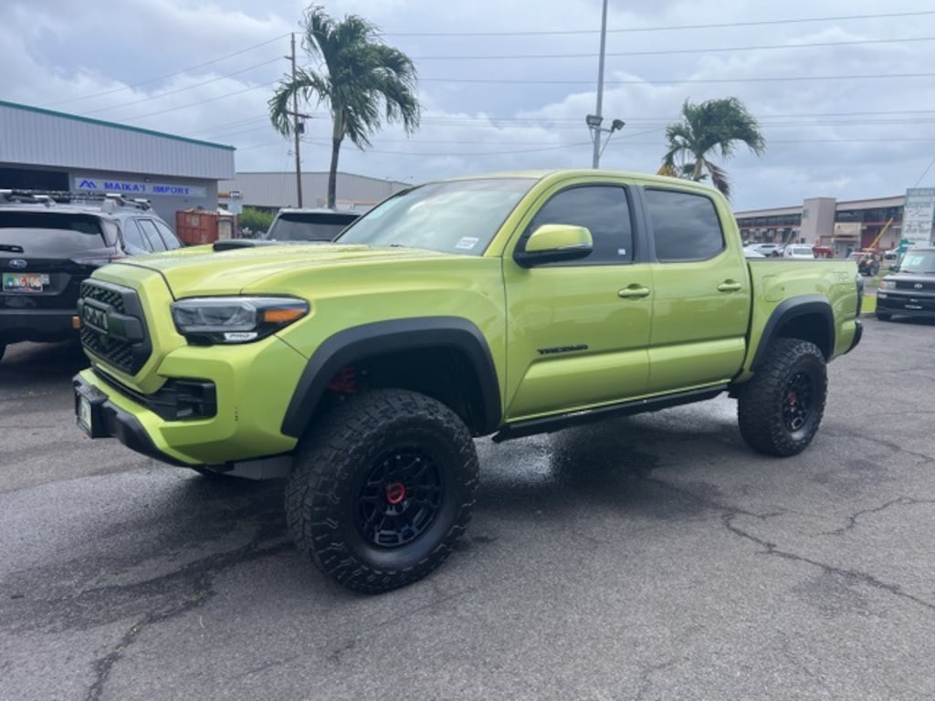 Tacoma TRD Pro V6, 4D Double Cab, 3.5L V6 PDI DOHC 24V LEV3-ULEV70 278hp, 6-Speed Automatic, 4WD, Lime, 120V/400W Deck Mounted AC Power, ABS brakes, Alloy wheels, Auto-Dimming Rearview Mirror w/HomeLink, Black Overfenders, Black Wheel Locks, Blind Spot Monitor w/Rear Cross Traffic Alert, Dual Zone Automatic Climate Control, Electronic Stability Control, Engine Immobilizer, Front dual zone A/C, Front Heated Seats, Heated door mirrors, Heated Front Seats, Heated front seats, Hood Graphics, Illuminated entry, Lane Change Assist, Low tire pressure warning, Mesh Front Grille, Power moonroof, Power Sliding Rear Window w/Privacy Glass, Projector-Beam Headlights, Rear Parking Assist Sonar, Remote keyless entry, Rigid Industries LED Fog Lights, Traction control, TRD Floor Mats, TRD Pro Cat-Back Exhaust, TRD Pro Exterior Badging, TRD Pro Package, TRD Pro Shift Knob, TRD-Tuned Off-Road Suspension (TR). **WHERE YOU MAKE THE DEAL **